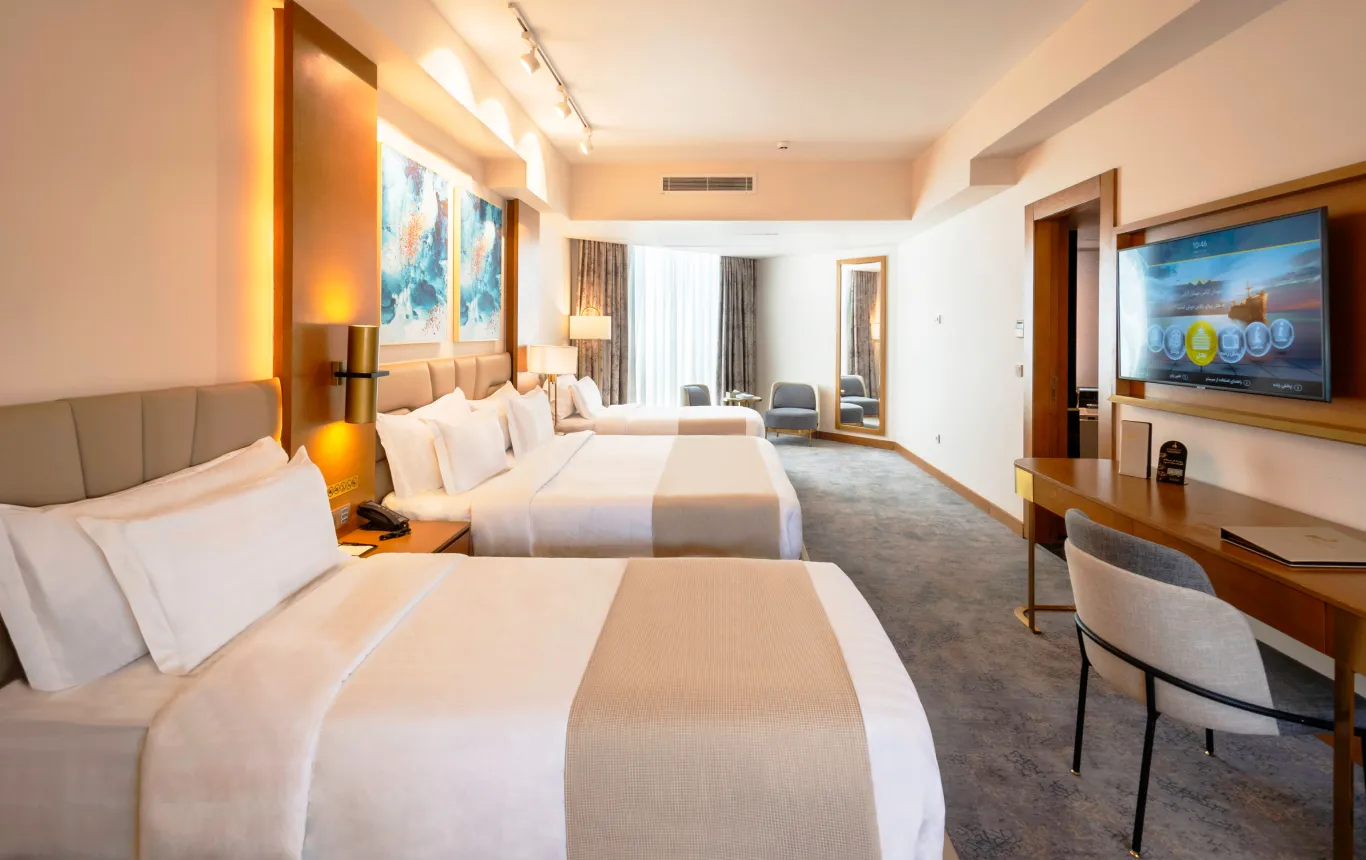 اتـــــاقهای ۳نفره با فضـــایی باز و دوستداشـــتنی بههمــــــراه یک تخت ۲نفره و یک تخــــتیکنفره، انتخابی عالی برای خانوادهها یا گروههای کوچک هســــــــــتند. امکــــــــــانات و خدمـــــــات این اتــــــــــــــاقها بهگـــــــــــونهای فراهـــــــــــــم شــــــــــده است که اقامــــــــــــــتی بهیادمــــــــاندنی و آرامــــــشبخــــــش را برای شمــــــا به ارمغان بیاورد.